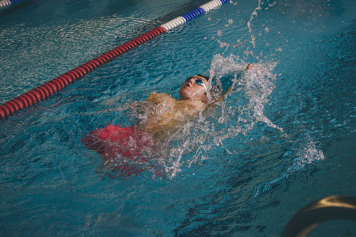 Kørestole og rollatorer til svømmehalsbrug findes umiddelbart efter indgangslågen. Denne kan benyttes i hele svømmehallen.